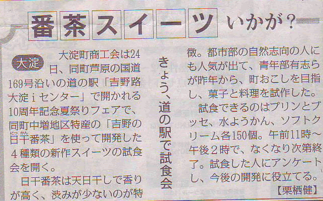 2011年7月24日 毎日新聞朝刊に道の駅での番茶スイーツ試食会の案内が掲載されました。